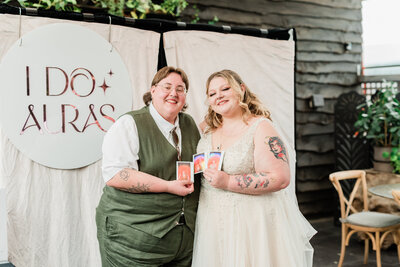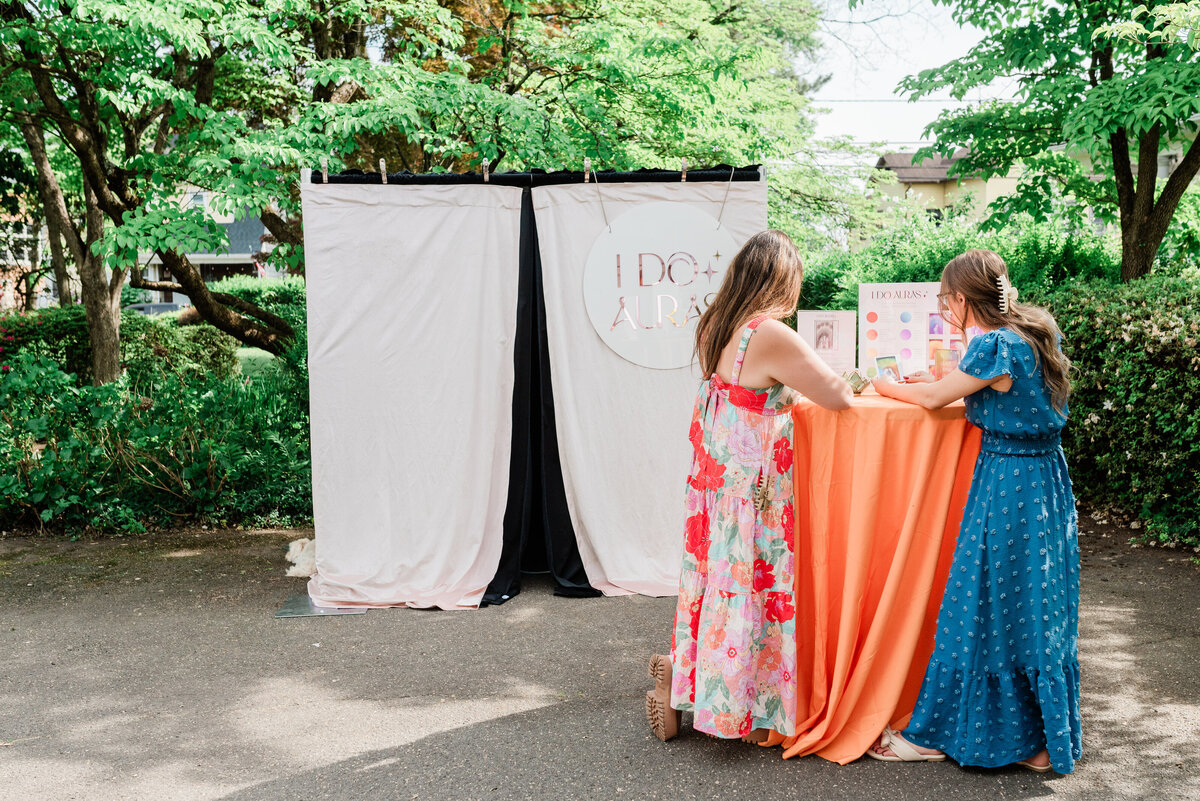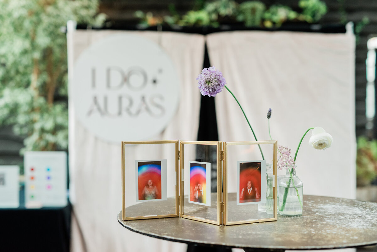 You neeeeeed I Do Auras at your wedding!! No one wants to see tacky photo booths anymore with props and feather boas and glasses. THIS is a timeless, artistic, and unique experience that guests will actually be excited about. Everyone was so intrigued by their aura portraits and thrilled to take home something meaningful and beautiful. So many of our guests ended up taking multiple- solo, with their partner, with friends- because it was just that cool. Seeing everyone’s different energies and reading about what the colors meant added such a magical, personal layer to the experience. I’m so glad we made it part of the day! Jen and Ryan are absolute gems. They pour so much love into what they do, and it truly shows. I would hire them again in a heartbeat for any event, not just weddings!