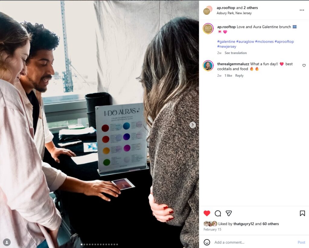 For Galentine’s weekend especially, aura photography adds a layer of reflection and celebration that goes beyond décor and cocktails. It transforms a brunch into a memory!